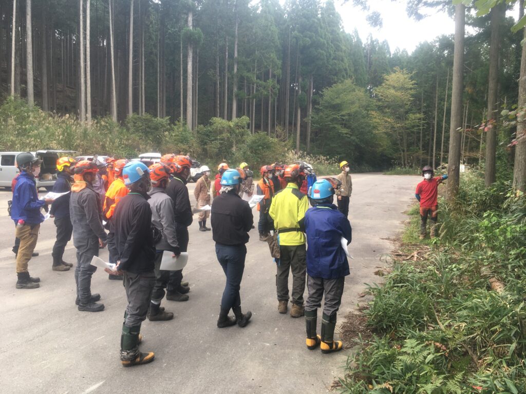 研修の受け入れも行っています。写真はフォレストリーダーを対象とした「目標林型に向けた施行方法」の研修風景。